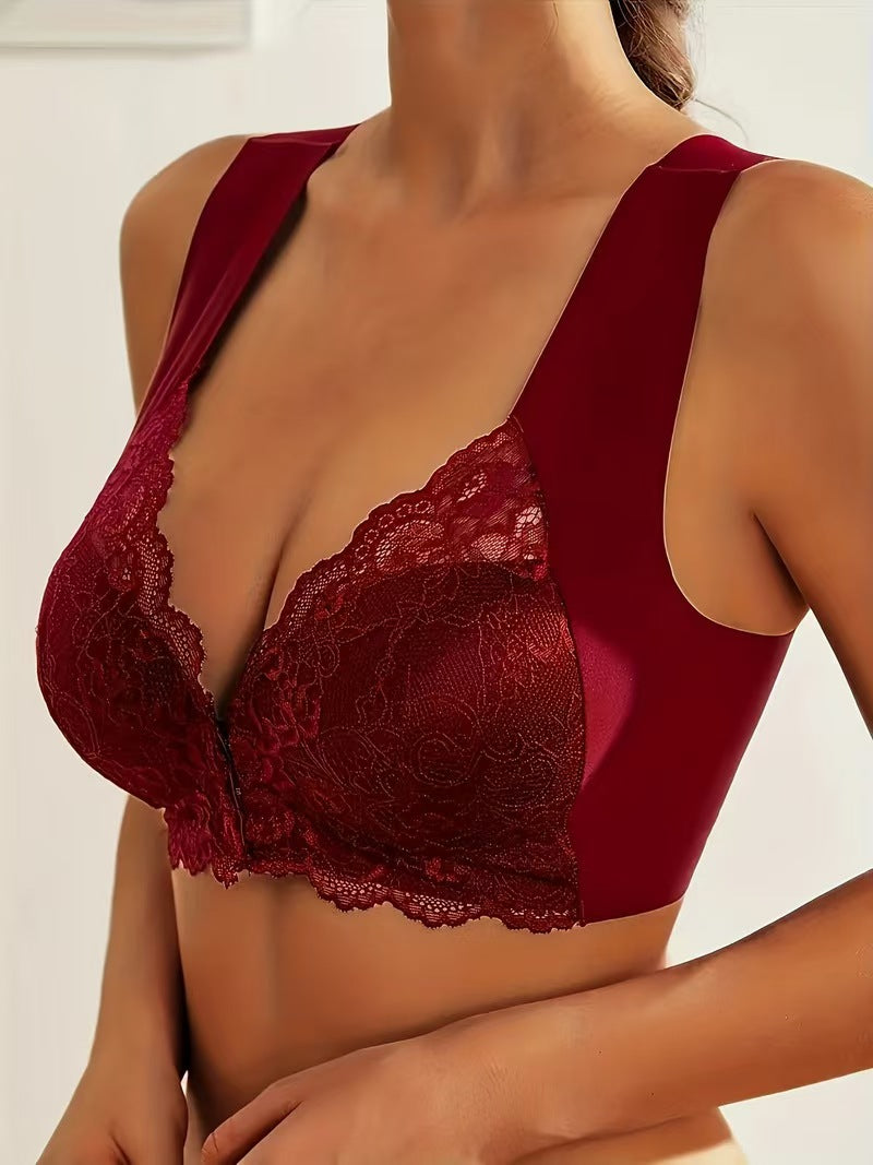 Jolie dentelle et excellent confort. Mise en place facile grâce aux agrafes devant. Livraison correcte.